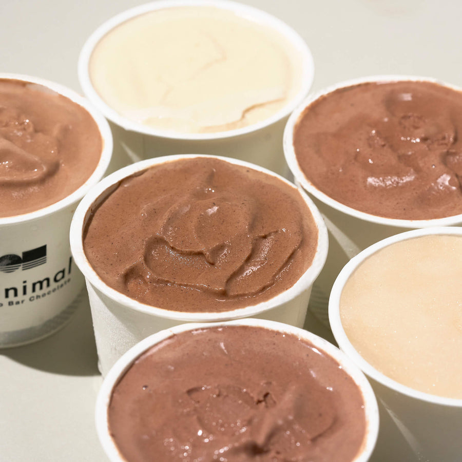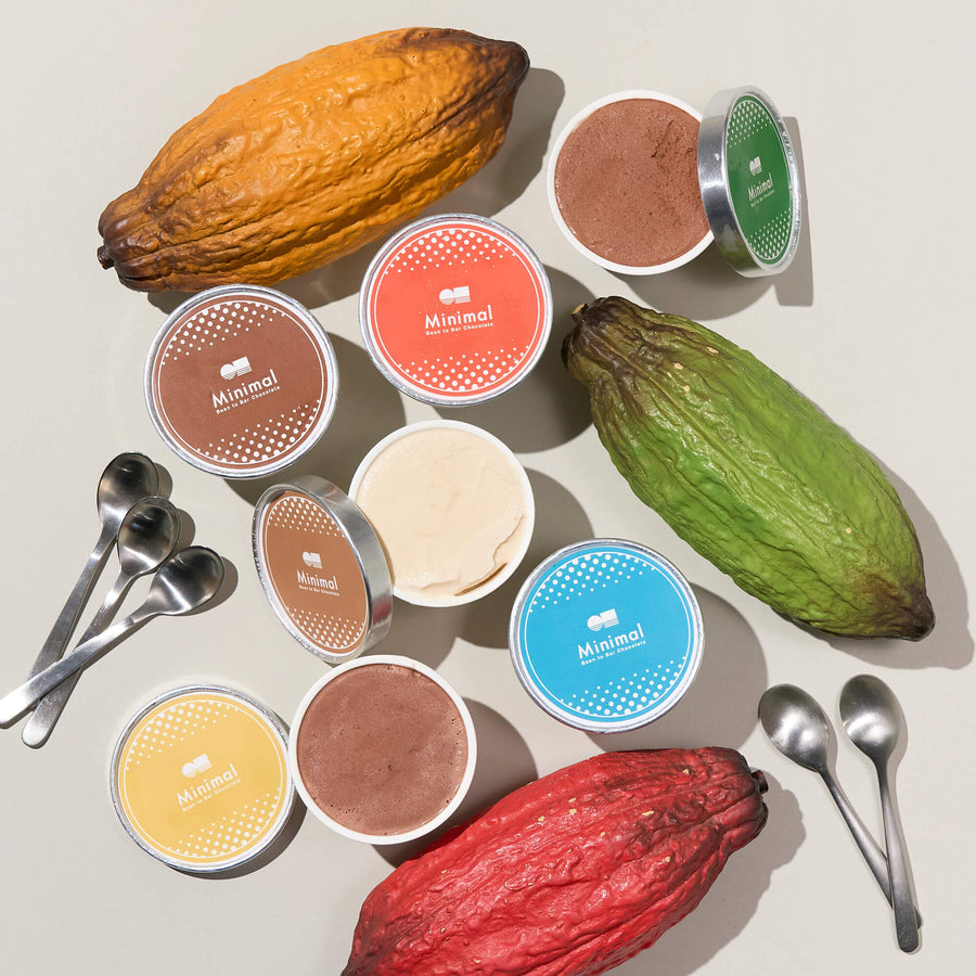 カカオからチョコレートまで堪能できる、Bean to Bar専門店ならではのアイスセット主役はカカオから丁寧に手づくりしたチョコレートを使った、カカオの産地ごとの特徴が楽しめる4種のダークチョコレートのアイス。 |