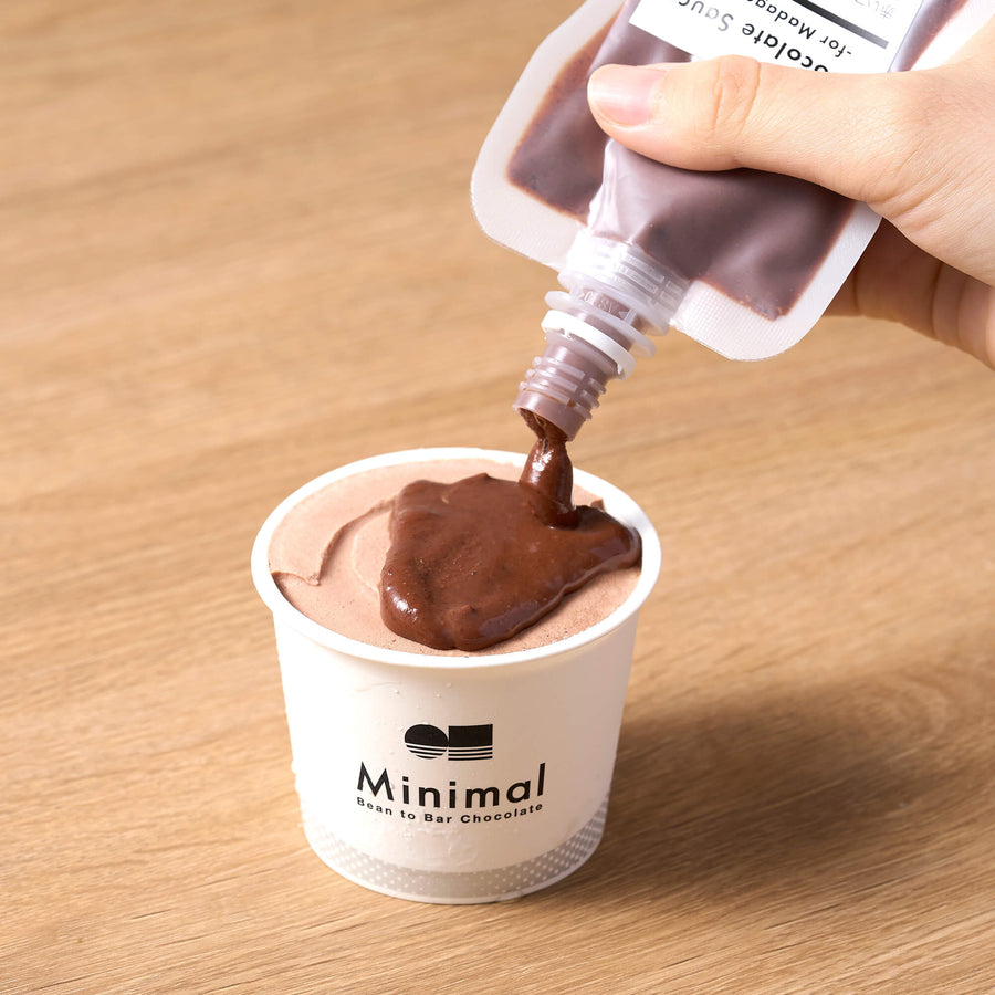 アイスのおいしい召し上がり方◎赤いフタのマダガスカルには付属のソースをかけて楽しむ |
