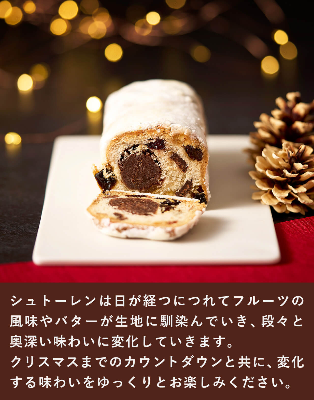 幅広い方にお楽しみいただけるように、お酒を使わず、3種のチョコレートでシュトーレンらしい味わいを表現しました。