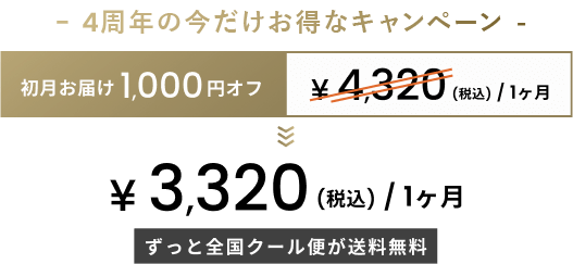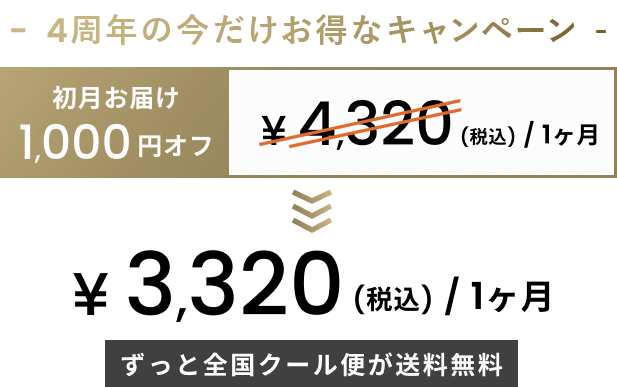 ※送料無料などの特典は3回以上のお届けを前提としているため基本的に3回以上の継続をお願いしています